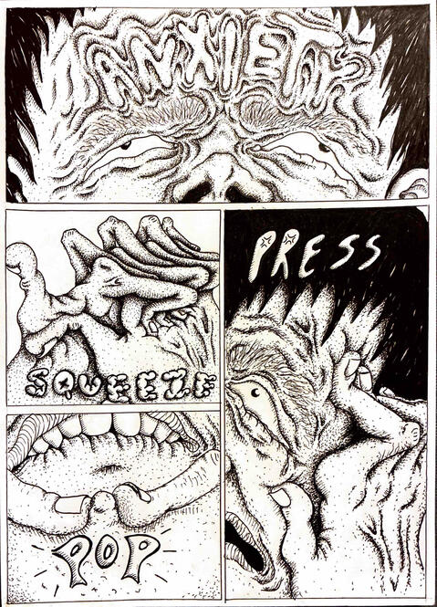 Having graduated in 2022 with a BFA from the School of the Art Institute of Chicago, Jordan Roth now lives in Albuquerque, New Mexico. Their studio practice includes mainly hand-drawn illustration and comics, ceramics, and printmaking.Through their work, Jordan explores personal and social narratives, often using abrasive or “ugly” imagery to question ideas of beauty and societal expectations. Much of their art also emerges from imagined worlds, inviting reflection on escapism—its comforts as well as its complications and how art can hold space for these contradictions. Updates on Jordan's vending schedule can be found on their Instagram, linked below.